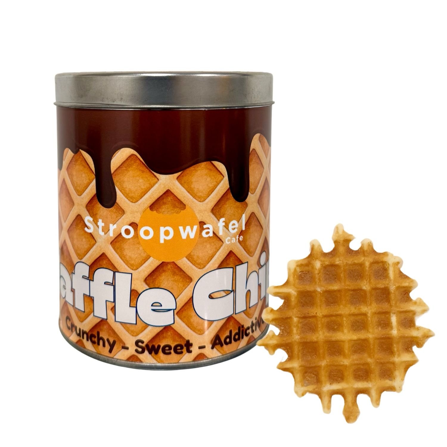 20 crunchy waffle chips in a special Waffle Chips design tin