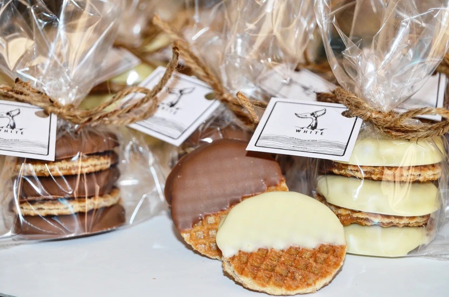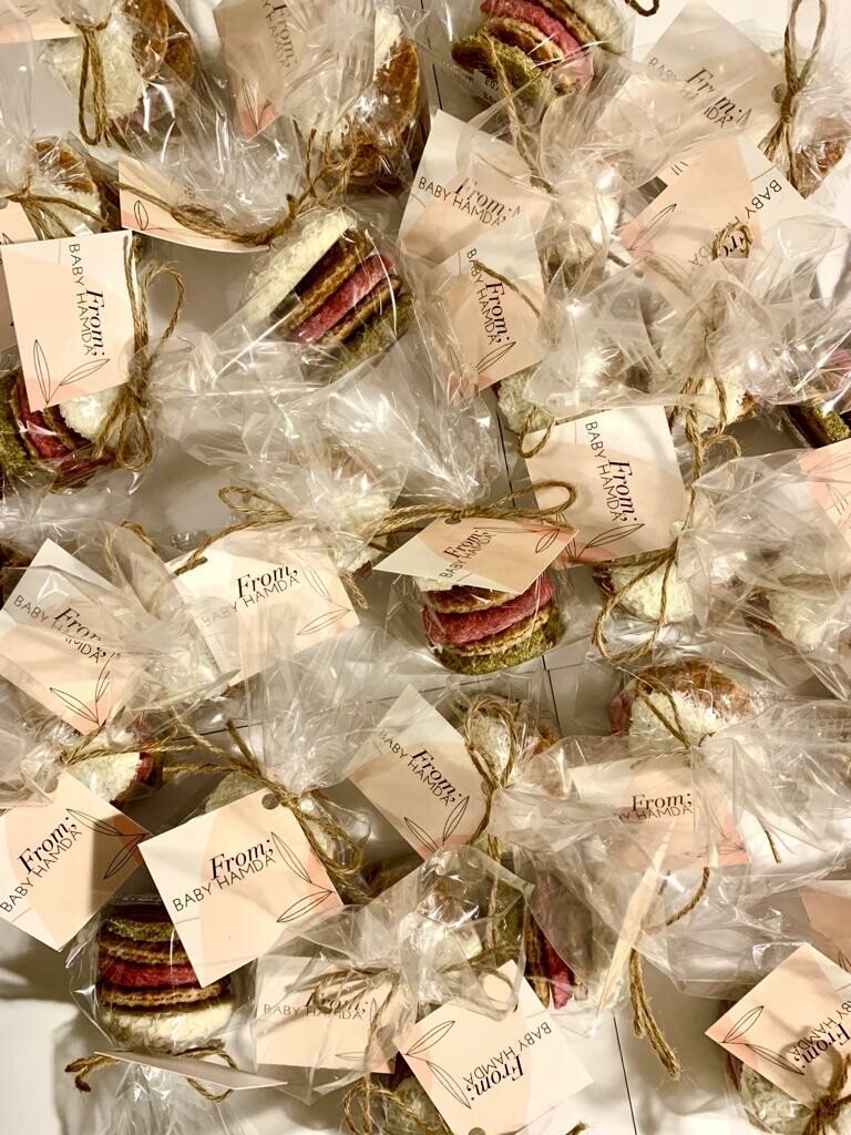 5 Pieces of mini mix of flavors Stroopwafel packed in a plastic with your logo tag